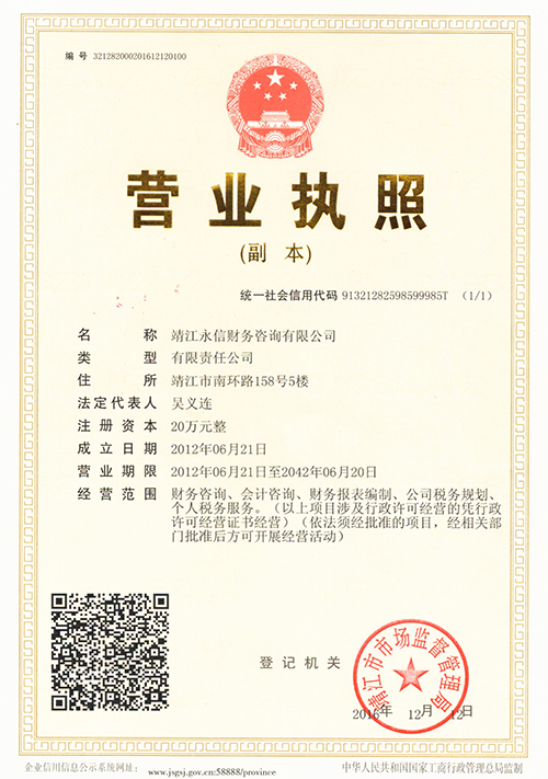 靖江永信財(cái)務(wù)咨詢有限公司是依法注冊成立的專業(yè)財(cái)稅代理機(jī)構(gòu)。公司主要業(yè)務(wù)為:代辦公司營業(yè)執(zhí)照、注冊各類公司、代理記賬報(bào)稅,代理商標(biāo)注冊,工商年檢,稅務(wù)登記年檢,企業(yè)清理注銷等,注冊香港公司,代辦申請一般納稅人資格認(rèn)定,公司專業(yè)為中小企業(yè)進(jìn)行納稅籌劃,代理記賬報(bào)稅,企業(yè)內(nèi)部審計(jì);同時(shí)也專業(yè)代理進(jìn)出口經(jīng)營權(quán)申請。
